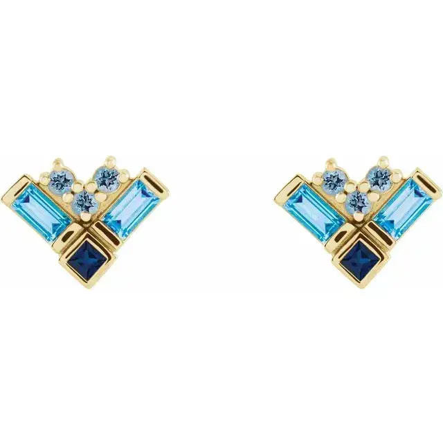 14K Yellow Gold Natural Blue Multi-Gemstone Cluster Earrings