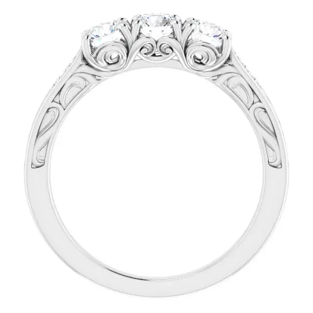 14K White Gold 1 1/8 CTW Natural Diamond Three-Stone Accented Anniversary Band