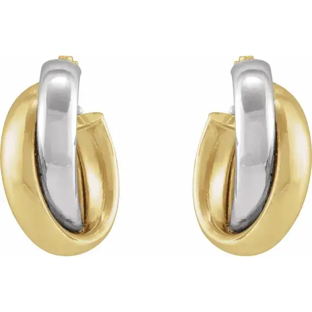 14K Yellow/White Gold Double Tube Hoop Earrings