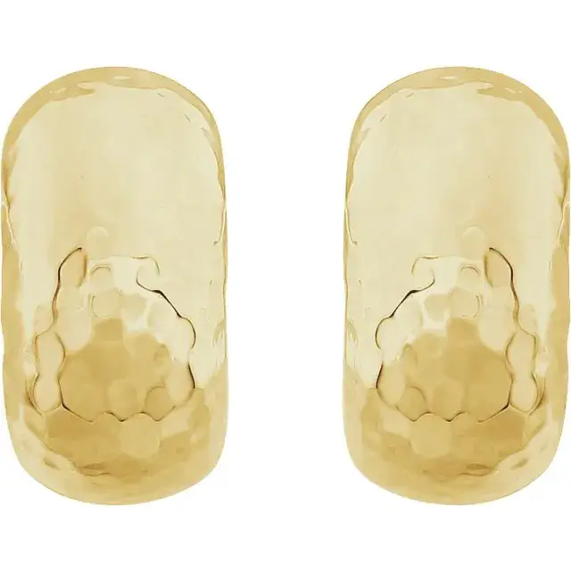 14K Yellow Gold Hammered Hollow J-Hoop Earrings
