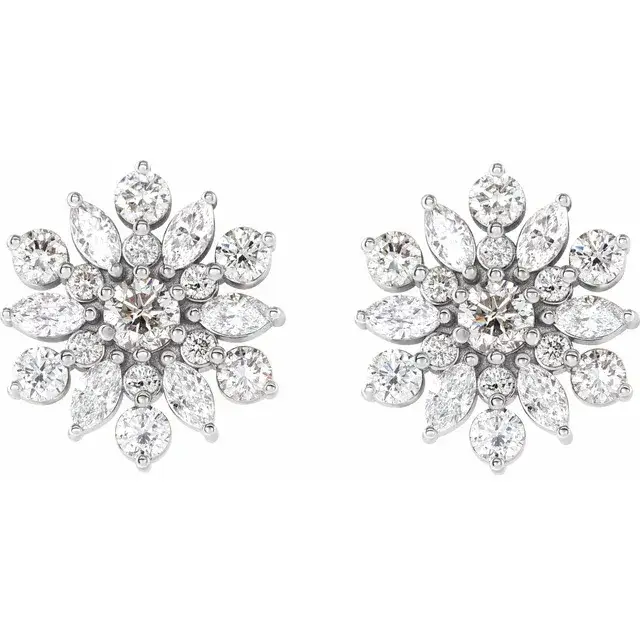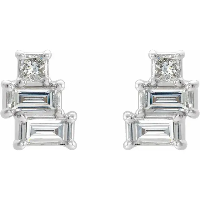 14K White Gold 1/4 CTW Natural Diamond Geometric Cluster Earrings