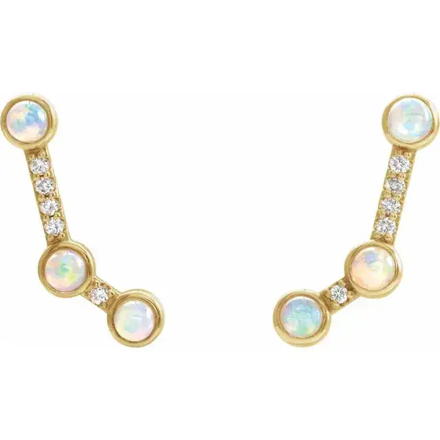 14K Yellow Gold Natural Ethiopian Opal & .08 CTW Natural Diamond Ear Climbers