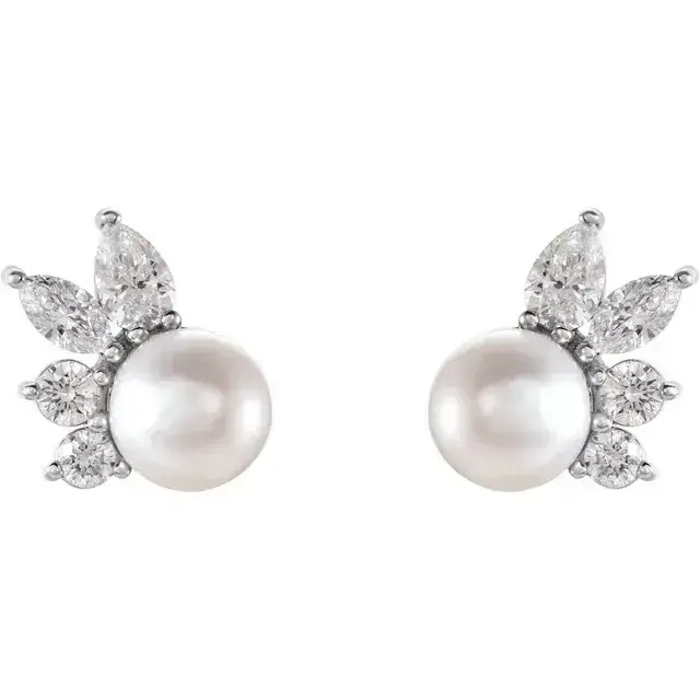 14K White Gold Cultured White Akoya Pearl & 1/2 CTW Natural Diamond Earrings