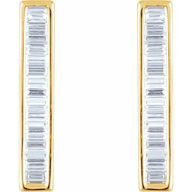 14K Yellow Gold 1/2 CTW Natural Diamond Baguette Bar Earrings