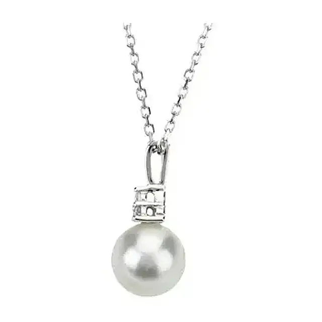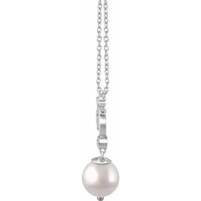 14K White Cultured White Freshwater Pearl & 1/6 CTW Natural Diamond 18″ Necklace