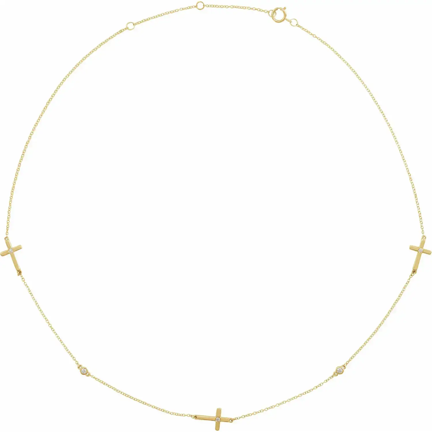 14K White Gold 1/4 CTW Natural Diamond 3-Station Cross 18” Necklace