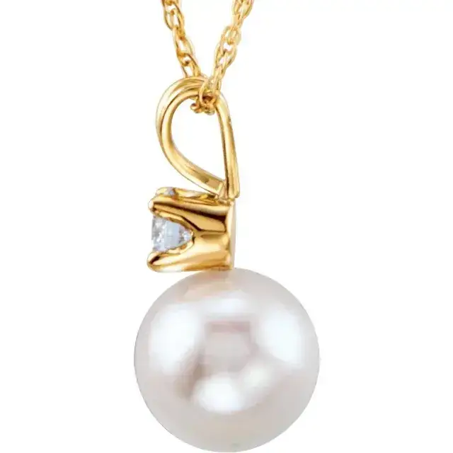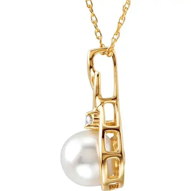 14K Yellow Gold Pearl & .03 CTW Diamond Necklace