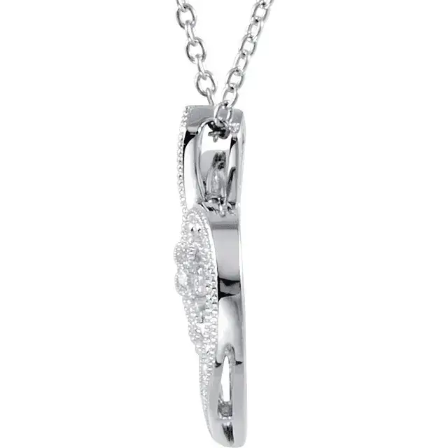 14K White Gold .08 CTW Diamond Heart Key Necklace