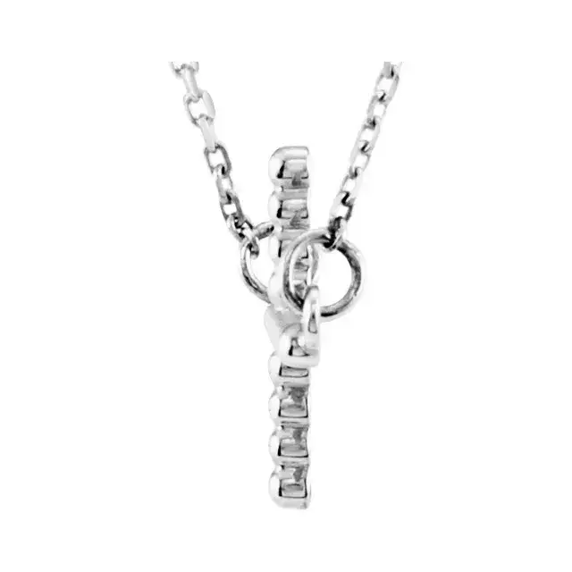 14K White Gold .03 CTW Diamond Bar Cross Necklace