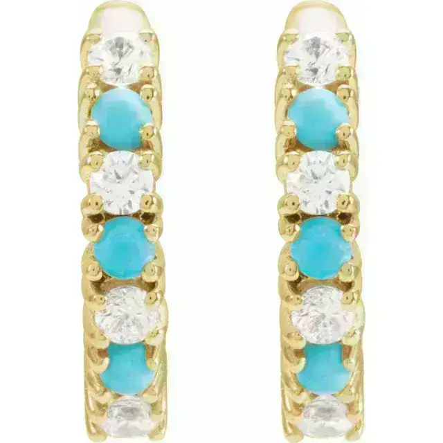 14K Yellow Gold Turquoise & 1/3 CTW Diamond Hoop Earrings