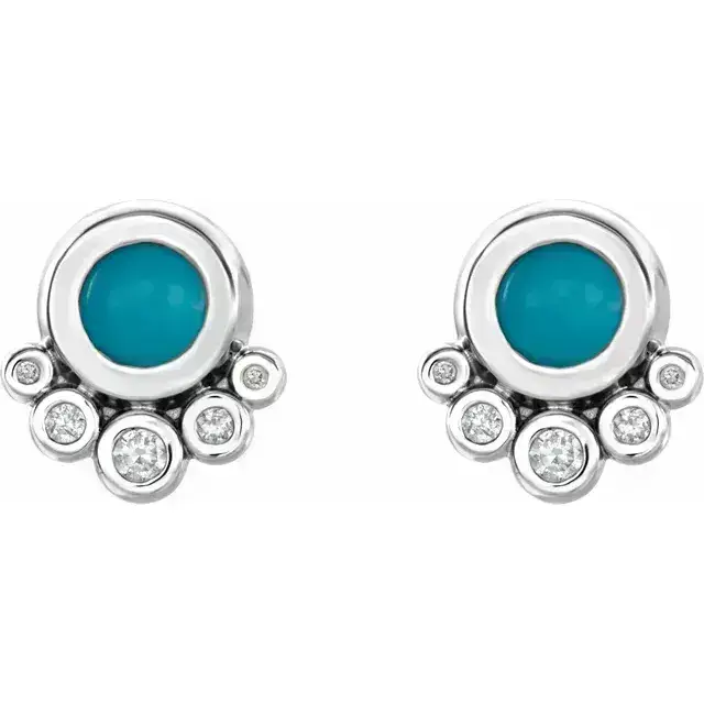 14K White Gold Turquoise & 1/8 CTW Diamond Earrings