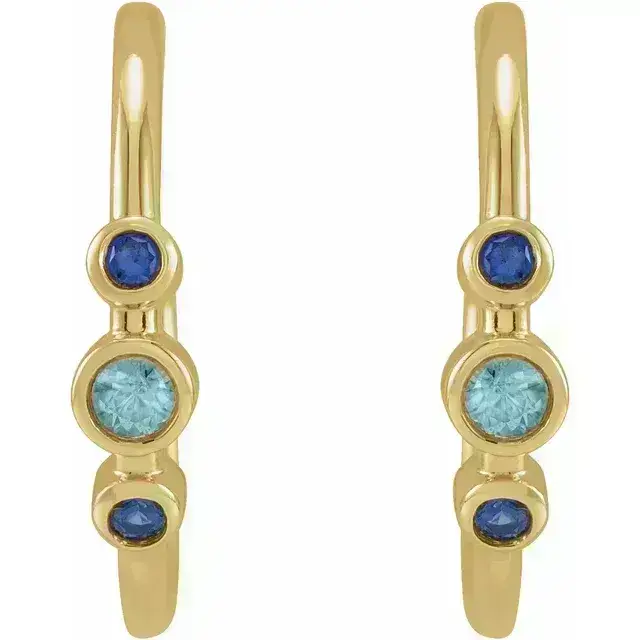 $1,429.99$1,072.4914K Yellow Gold Natural Blue Zircon & Natural Blue Sapphire Bezel-Set Hoop Earrings