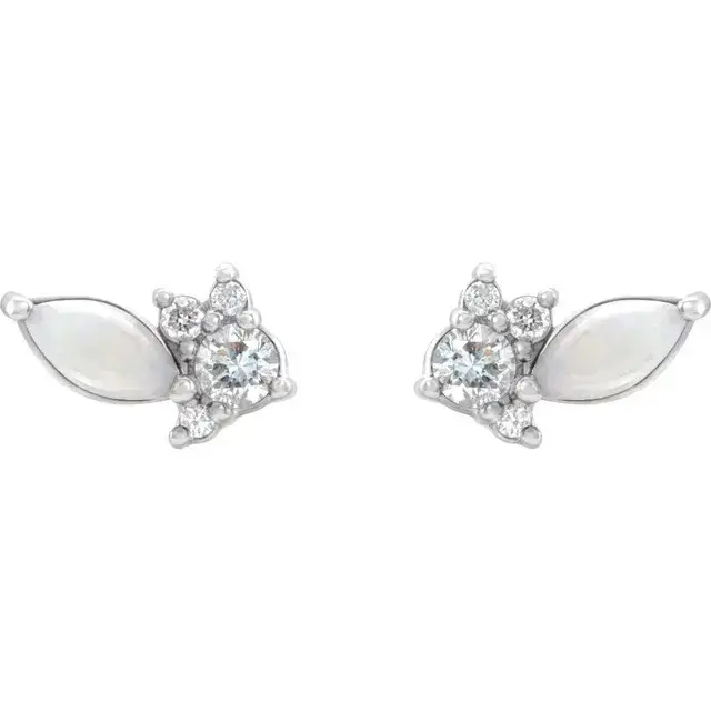 Price range: $562.49 through $569.99Australian Natural White Opal & 1/6 CTW Natural Diamond Cluster Earrings