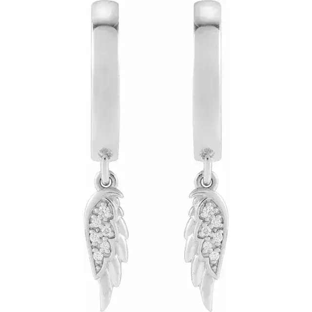 Sterling Silver .03 CTW Diamond Angel Wing Hoop Earrings