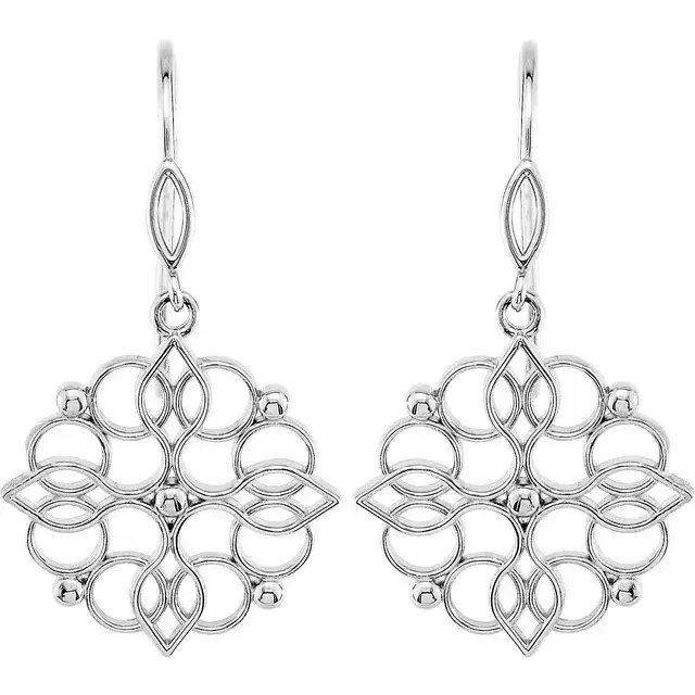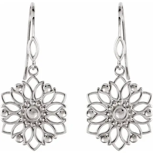 Sterling Silver 35.3×18.8 mm Floral Earrings