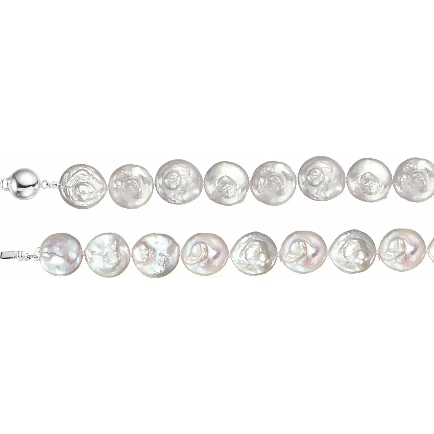 Price range: $52.49 through $112.49Sterling Silver 12-13 mm Cultured White Freshwater Pearl Coin 18″ or 38″ Necklace