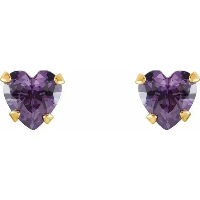 14K Yellow Gold Amethyst Youth Stud Earrings
