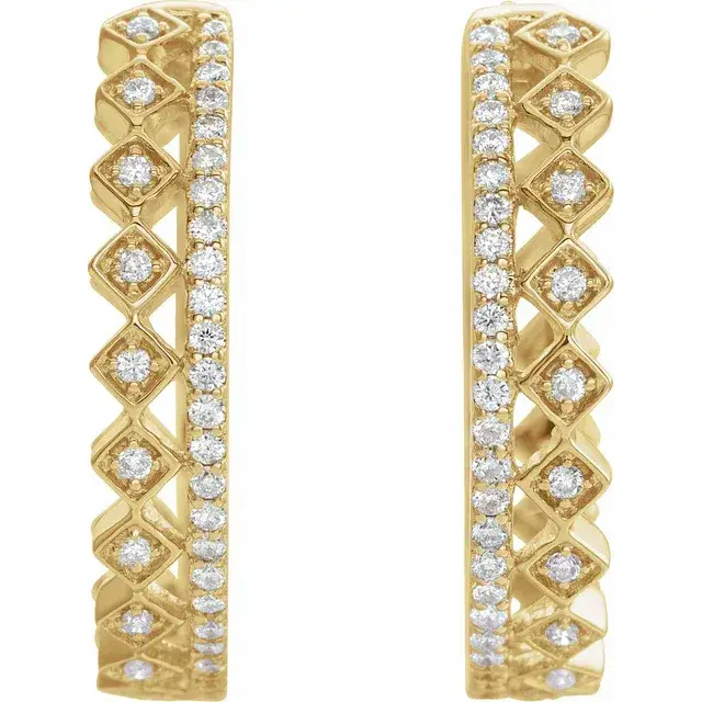 14K Yellow Gold 1/4 CTW Natural Diamond Geometric 18.75 mm Hoop Earrings