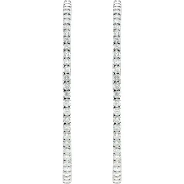 14K White Gold 5 CTW Natural Diamond Inside-Outside 51 mm Hoop Earrings