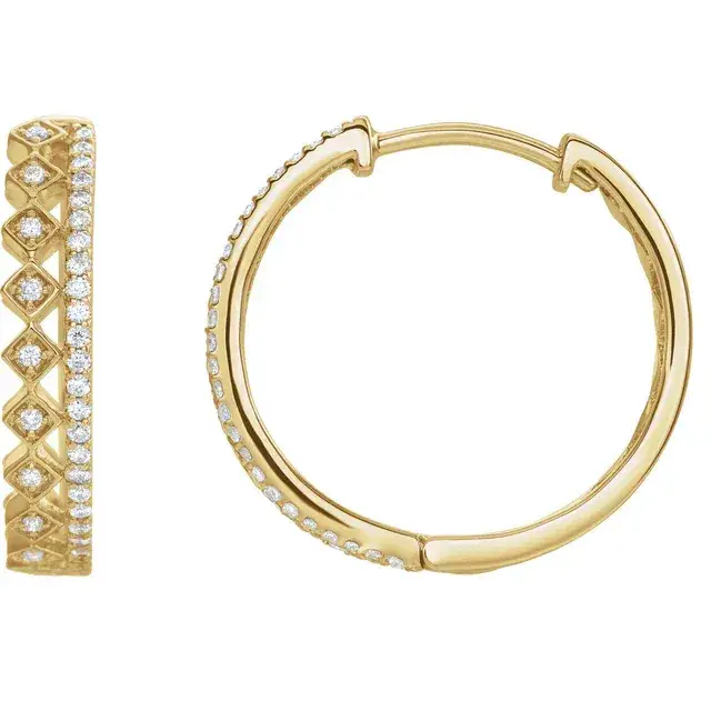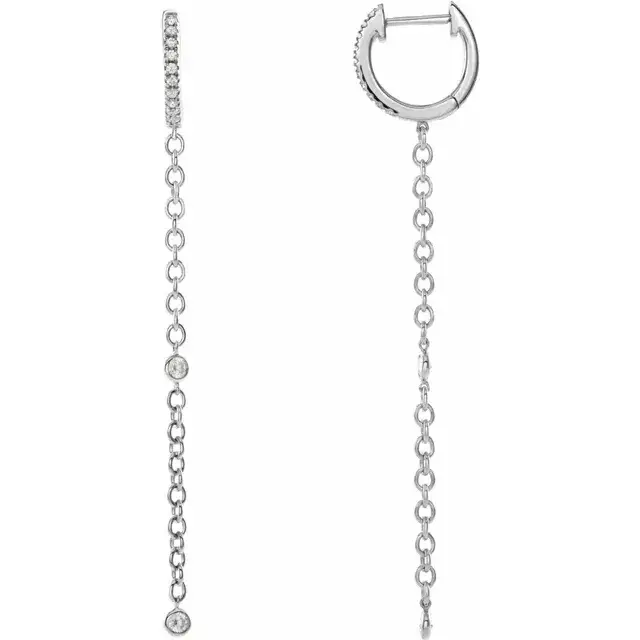 The 1/4 CTW Natural Diamond Hinged Hoop Chain Earrings, available in both white and yellow gold, are a chic and modern expression of refined luxury. Meticulously crafted, these hoop earrings feature a hinged design adorned with delicate chains and accented with 1/4 carat of natural diamonds. The intricate play of diamonds and chains adds a touch of sophistication and movement to the classic hoop silhouette. The choice between white and yellow gold allows for personalization, with white gold providing a sleek and contemporary backdrop, while yellow gold imparts a warm and timeless elegance. These earrings seamlessly blend contemporary design with timeless beauty, making them a versatile and stylish accessory for any occasion, capturing attention with their unique and captivating aesthetic.Discover more from Fossil Creek Jewelry