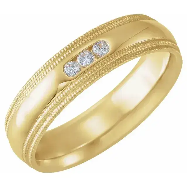 Introducing our exquisite 1/5 CTW Natural Diamond Half Round Comfort-Fit Milgrain Band, tailored to perfection in both radiant yellow and classic white gold. Crafted with meticulous attention to detail, this band exudes timeless elegance and sophistication. Featuring a total of 1/5 carat weight of natural diamonds delicately set within the band, its shimmering brilliance is accentuated by intricate milgrain detailing along the edges. Designed with comfort in mind, the half-round profile ensures a snug fit, making it a perfect choice for everyday wear or as a symbol of enduring commitment. Elevate your ensemble with the understated luxury of our Natural Diamond Milgrain Band, a timeless addition to any jewelry collection.
