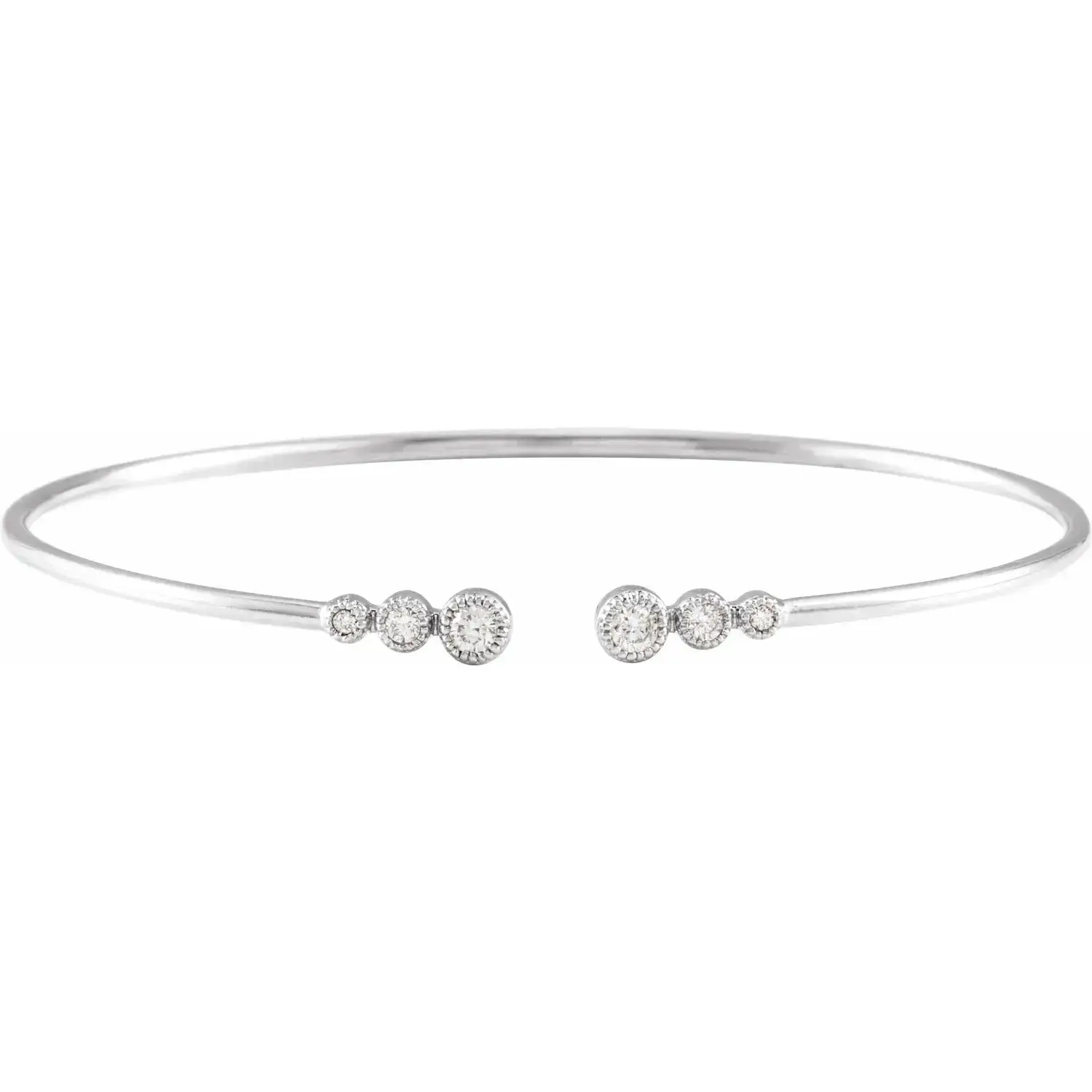 Indulge in timeless sophistication with our 1/8 CTW Natural Diamond Bangle Bracelet, a radiant embodiment of elegance and grace. Crafted with exquisite attention to detail, this bracelet is available in luxurious white, yellow, and rose gold variations, with an additional option featuring a captivating blend of yellow and white gold. Adorned with a total of 1/8 carat weight of natural diamonds, each stone meticulously set to enhance its brilliance, this bangle exudes understated glamour. With a comfortable and adjustable 7 1/2-inch circumference, it effortlessly complements any wrist, adding a touch of opulence to both casual and formal attire. Elevate your ensemble with the refined beauty and timeless allure of this diamond-accented bangle, a cherished addition to any jewelry collection.Discover more from Fossil Creek Jewelry