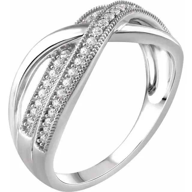 Make a bold and stylish statement with the 14K White Gold 1/2 CTW Natural Diamond Criss-Cross Ring, a striking piece that seamlessly blends modern sophistication with timeless elegance. Meticulously crafted, this ring features a captivating criss-cross design adorned with natural diamonds totaling an impressive 1/2 carat. The diamonds are expertly set along the intersecting bands, creating a continuous and dazzling sparkle. The clean and lustrous appearance of white gold enhances the brilliance of the diamonds, making this ring a luxurious and eye-catching accessory. Whether worn alone to command attention or stacked with other rings for a personalized look, the 14K White Gold 1/2 CTW Natural Diamond Criss-Cross Ring is a symbol of contemporary glamour and enduring beauty, showcasing your distinctive taste in fine jewelry.Discover more from Fossil Creek Jewelry