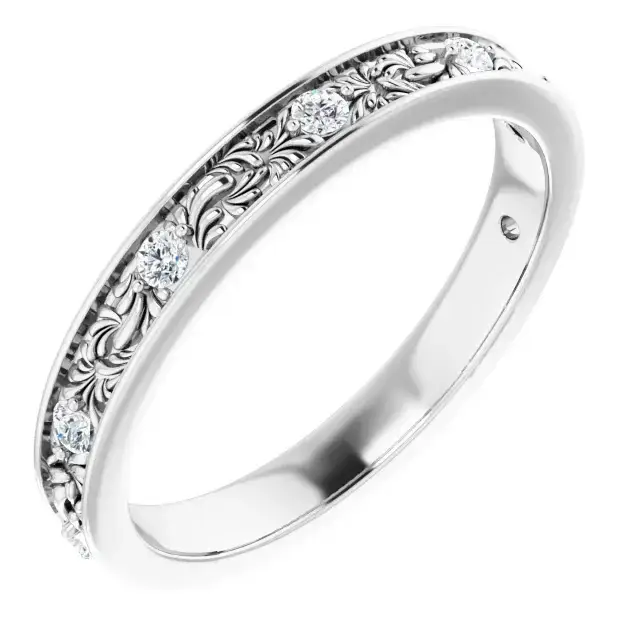 Elevate your celebration of love with the exquisite 14K White Gold 1/3 carat total weight Natural Diamond Bead Anniversary Band. This captivating ring showcases a row of brilliant round-cut diamonds intricately set in a bead-like pattern, creating a dazzling display of sophistication and style. The 14K white gold band enhances the brilliance of the diamonds, providing a timeless and versatile backdrop. The intricate detailing and expert craftsmanship make this anniversary band a symbol of enduring commitment and shared moments. With a total weight of 1/3 carats, the diamonds add a touch of radiance, making this band a perfect expression of the everlasting bond and a stunning addition to any jewelry collection. Celebrate your journey together with this beautifully designed and meticulously crafted diamond anniversary band.Discover more from Fossil Creek Jewelry