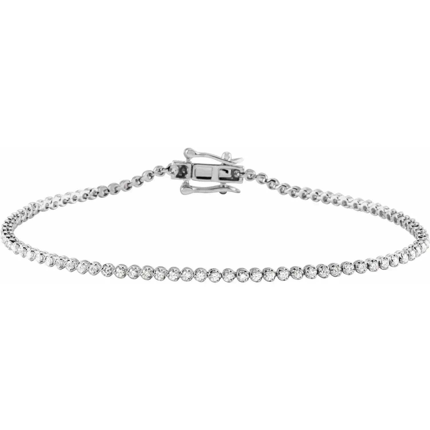 This 14K White Gold Diamond Hinged Cuff Bracelet delivers clean shine, modern style, and refined elegance. The bracelet features natural diamonds totaling 1/4 CTW arranged along a polished white gold cuff. Because the diamonds reflect strong light, the bracelet offers bright shimmer with every movement. The hinged design also gives smooth function and easy wear. Natural Diamonds With Bright, Balanced Sparkle Each diamond provides clean brilliance that lifts the entire design. Their precise placement creates even sparkle across the cuff. Moreover, the stones sit securely while keeping the bracelet sleek and comfortable. This balance allows the diamonds to shine without overwhelming the simple silhouette. Polished White Gold for Lasting Shine Crafted from solid 14K white gold, the cuff offers strength and cool radiance. The polished surface highlights every diamond and creates crisp reflections. Additionally, the hinged closure allows quick and secure fastening. The smooth shape rests comfortably against the wrist throughout the day. Versatile Style for Daily or Special Wear This 14K White Gold Diamond Hinged Cuff Bracelet suits both relaxed and formal occasions. Diamonds symbolize clarity and strength, giving the bracelet meaningful expression. The classic white gold style pairs well with diamond earrings, white gold chains, and gemstone bracelets. Designed for Comfort and Easy Styling The cuff shape keeps the bracelet stable and comfortable. You can wear it alone for a simple bright accent or layer it with other bracelets for added texture. Its timeless design ensures lasting style through every season. This bracelet blends gemstone brilliance, polished white gold, and smooth engineering. It adds refined sparkle, modern comfort, and versatile elegance to any jewelry collection. Details — 14K White Gold Diamond Hinged Cuff Bracelet- Metal: Solid 14K White Gold