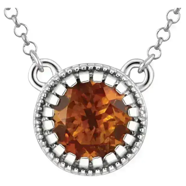 Style: Garnet Solitaire Scroll Necklace