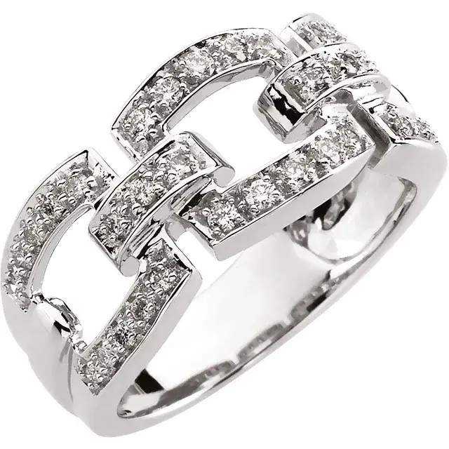 The 14K White/Yellow Gold 1/4 CTW Natural Diamond Link Ring is a harmonious blend of sophistication and modern design. Crafted in the union of 14K white and yellow gold, this exquisite ring features a series of interlinked diamond-adorned links, totaling 1/4 carats. Meticulously set diamonds create a dazzling display of brilliance, enhancing the contemporary allure of the piece. The two-tone gold adds versatility, with white gold offering a sleek and modern backdrop and yellow gold infusing warmth and classic charm. This link ring serves as a symbol of interconnectedness and timeless style, making it a versatile accessory suitable for both everyday wear and special occasions. Whether worn alone or paired with other pieces, this diamond link ring effortlessly elevates any ensemble with its refined and distinctive aesthetic.Discover more from Fossil Creek Jewelry