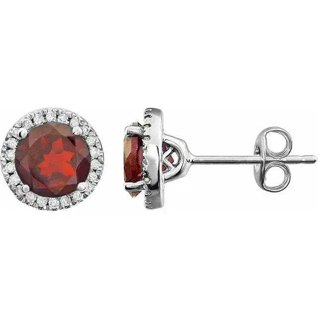Crafted from solid 14K yellow gold, the earrings provide lasting durability and soft golden warmth. The polished finish enhances both the garnet and diamonds, making the halo appear even more radiant. Additionally, the secure post-and-nut backing ensures comfortable wear throughout the day. The gold’s warm hue complements the garnet’s red color naturally.
