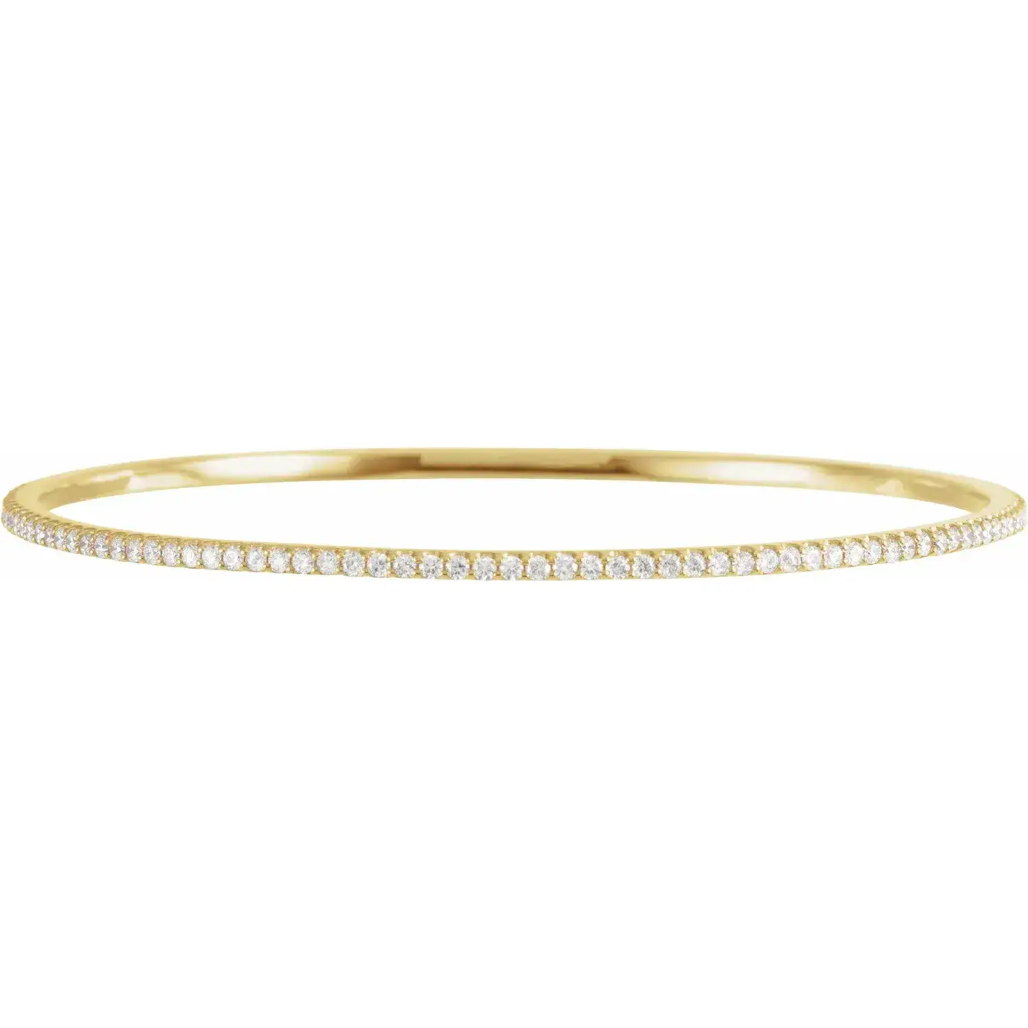 The 4mm Hinged Bangle 7″ Bracelet is an elegant and contemporary accessory designed for those who appreciate a touch of sophistication. Offered in both yellow and rose gold options, this hinged bangle caters to individual style preferences. The 4mm width strikes a perfect balance, making it versatile enough to be worn alone for a subtle statement or stacked with other bracelets for a bolder look. The 7-inch length ensures a comfortable fit, while the hinged design allows for easy wearability. Whether chosen for its warm and classic appeal in yellow gold or the romantic charm of rose gold, this bracelet is a refined addition to any jewelry collection, offering a seamless blend of modern design and timeless elegance.